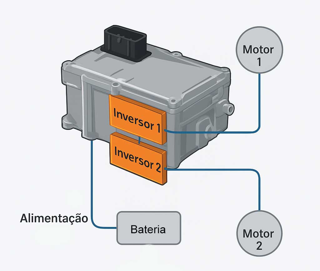 A BorgWarner desenvolveu um módulo de inversor duplo capaz de controlar dois motores elétricos a partir de um único sistema. A tecnologia é uma das soluções que mais avançam na eletrificação de veículos híbridos e 100% elétricos, combinando eficiência, compacidade e controle inteligente.